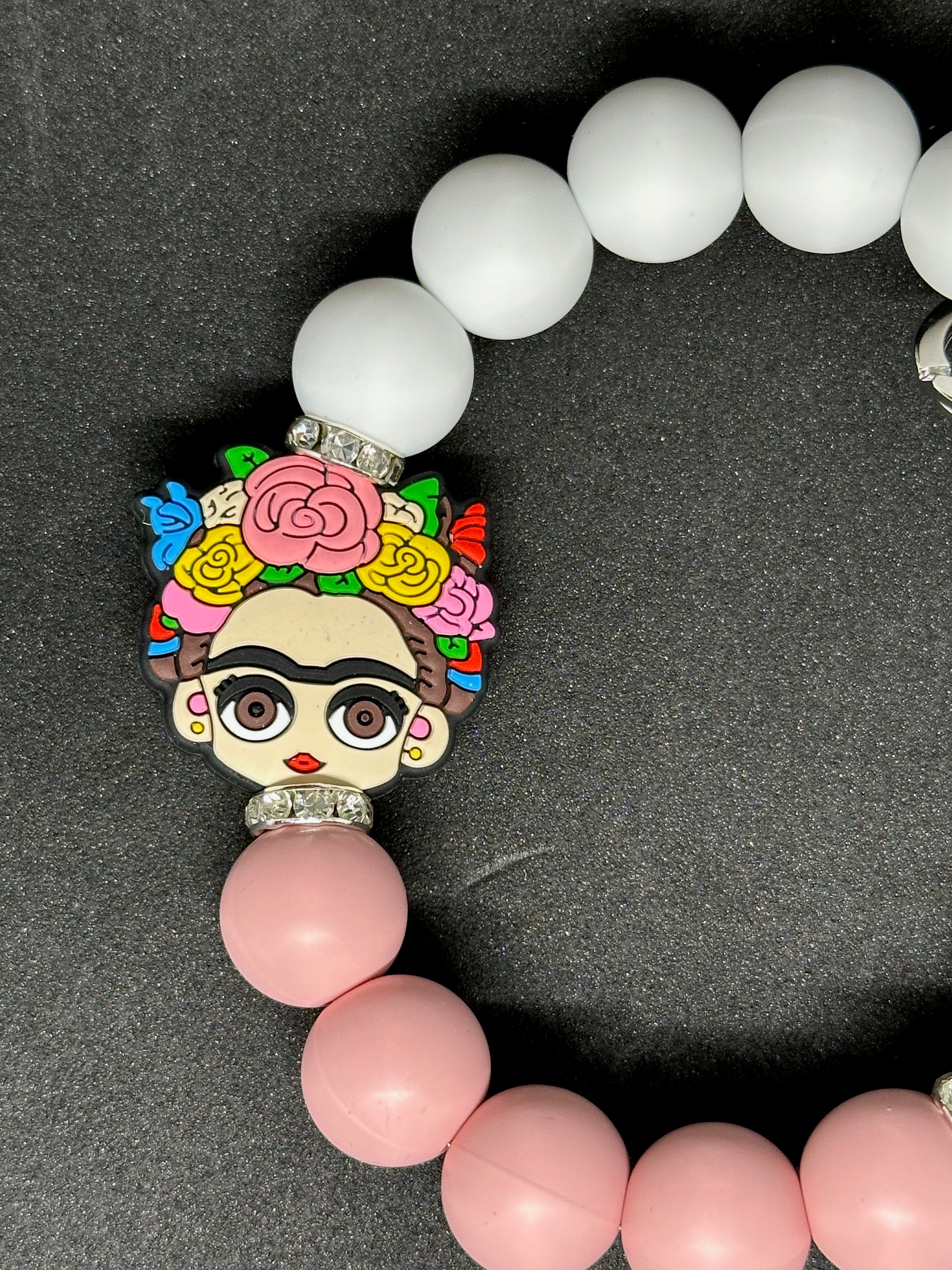 "The Freida Wristlet offers both style and practicality with its durable design. Handmade with care, this multi-purpose key chain holder is perfect for keeping your essentials close on the go. Say goodbye to losing your keys and hello to convenience."